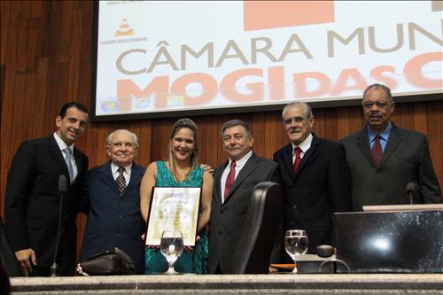 Em clima de muita alegria e emoção foi realizada na Câmara Municipal de Mogi das Cruzes, na última quinta-feira, a cerimônia de entrega do título de Cidadã Mogiana à Reitora da Universidade de Mogi das Cruzes, Regina Coeli Bezerra de Melo e, também, o título de Honra ao Mérito ao Chanceler da Universidade, professor Manoel Bezerra de Melo, pelos 50 anos de fundação da Organização Mogiana de Educação e Cultura (OMEC), mantenedora da UMC. O evento reuniu autoridades, empresários, amigos e familiares dos homenageados.