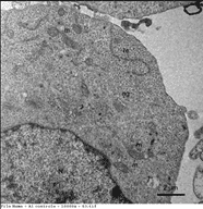 Figura 4: Microscopia eletrônica de transmissão de célula B16F10-Nex2. N (Núcleo); m (Mitocôndria); re (Retículo Endoplasmático Rugoso); ap (Aparelho de Golgi). Imagem obtida no Centro de Microscopia Eletrônica (CEME)- Universidade Federal de São Paulo – UNIFESP.